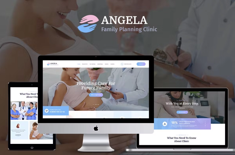 Angela 是一个时尚、清新的家庭计划诊所 WordPress 主题。它是为生育中心、怀孕中心或计划生育诊所设计的。它也非常适合医疗和保健相关企业,例如医院、妇科诊所、儿童诊所、研究中心、诊所、药房甚至堕胎中心。 此外,它还适合医生、牙医、紧急护理服务、实验室、外科医生、美容外科医生、妇科医生。最重要的是,它适合儿童诊所、健康中心、儿科、儿童诊所、神经科医生、精神科医生、精神病学、康复、婴儿中心、儿童诊所、重症监护、产科、药剂师以及所有医疗保健、医疗产品供应企业。 在胎教中心的胎儿发育,临产对于父母(母亲和父亲)和亲戚来说始终是一个非常紧张和持久的过程。未来的妈妈会考虑一切:出生地、医疗保健、第一双婴儿鞋,甚至未来的名字和星座。