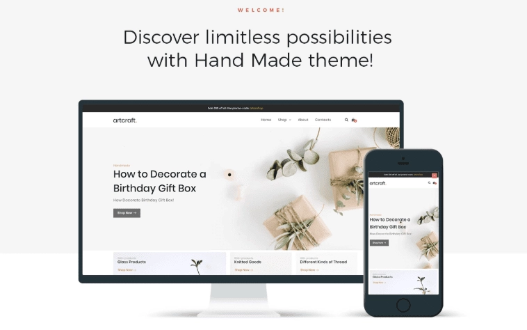 使用有吸引力的工艺品主题开设专门销售手工制品的在线商店。它具有简洁的设计和直观的界面,可以吸引更多的访客和潜在客户到您的商店。您将按类别、新品展示产品,您还可以添加视频来展示如何使用产品。借助适用于 Elementor 页面构建器的出色 Jet 插件工具包,您可以根据您的要求和愿景自定义网站。借助 JetWooBuilder 和 WooCommerce 插件,您将能够使用大量特殊小部件和时尚的页面布局创建电子商务页面模板。使用 JetCompareWishlist 插件,您可以向页面添加比较和愿望清单功能。 JetProductGallery 插件将允许以最方便的方式以图库的形式呈现产品图像。 JetElements 插件将提供一组有用的小部件,用于轻松快速地丰富您网站的内容。在响应式 Artcraft 主题的帮助下,您的手工商店将充满活力。