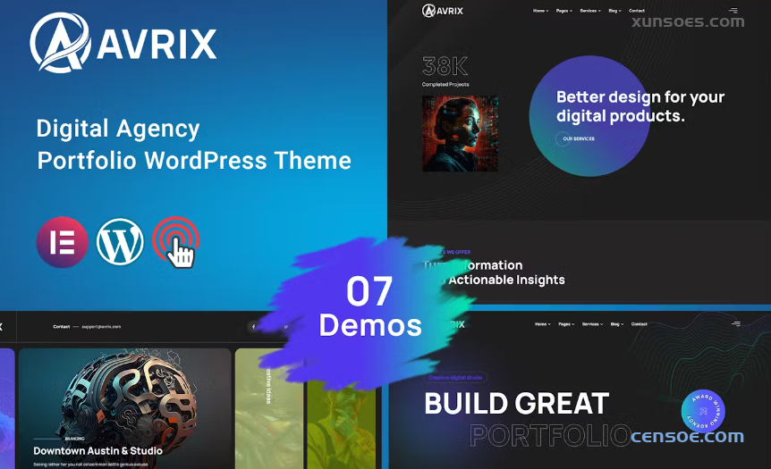 Avrix 是一款响应式、现代的数字机构组合 WordPress 主题,专为数字机构、设计工作室、数字营销机构、作品展示、个人作品集、网页设计/开发机构和初创企业量身定制。它旨在帮助您智能、轻松地展示您的作品,确保您的在线形象既引人注目又专业。