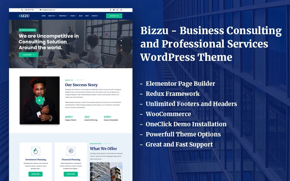 Bizzu 是 WordPress 主题的商业咨询和代理,基于 Redux Framework 和 Elementor 制作。 Bizzu 配备了构建精彩网站所需的所有必要工具,只需使用我们的快速演示导入即可。易于使用,加载速度快,无需具备高级 php 或 css 知识。
