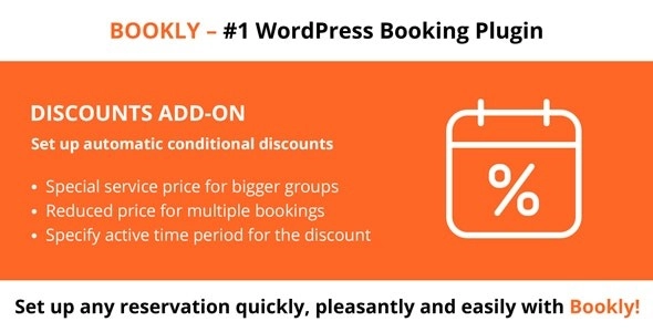 仅当您安装并激活了 Bookly 团体预订(附加组件)和/或至少一个允许您的客户在每个会话中预订多个预约的 Bookly 附加组件时,Bookly 折扣(附加组件)才有效。该插件是一个附加组件,需要安装并激活 Bookly PRO。