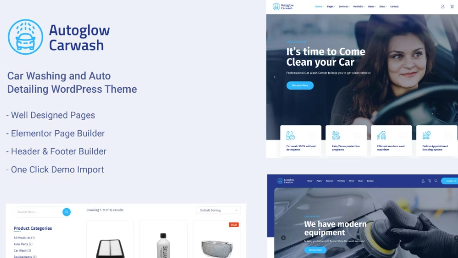 Autoglow洗车服务WordPress主题专为洗车、洗车和汽车维修服务而设计。您还可以为汽车经销商、汽车装饰、汽车杂志、汽车喷漆工作制作网站。 Autoglow Car Wash 给每个潜在客户留下了很好的第一印象,因为它的设计看起来专业、清晰,并且提供了洗车服务网站的所有必备功能。此外,该主题易于使用且高度可定制,无需任何编码知识。