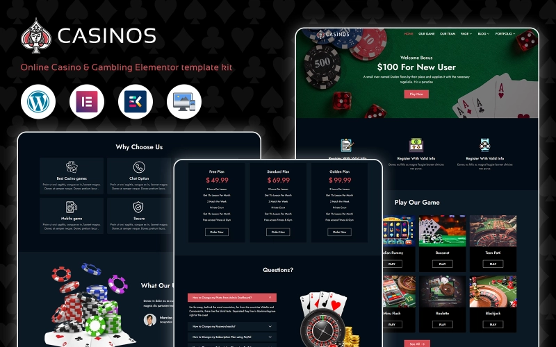 赌场:赌场和赌博 WordPress 主题的开发是为了给您的赌博和赌场业务带来新的、有吸引力的外观。如果您参与赌博、扑克赌场、彩票和体育博彩,那么这个主题对于您的公司来说是一个经济实惠且创新的解决方案。