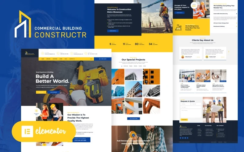 Constructr 是基于 Elementor 页面构建器构建的独特 WordPress 主题,适用于各种类型的建筑、建筑、工业、工厂、制造公司、工程网站。任何人都可以使用此主题构建自己的网站,而无需任何编码知识。