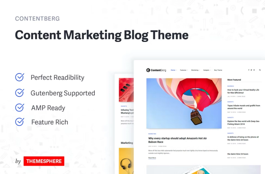 所有博主都知道,内容为王。使用这种美观的设计,以最少的干扰,使您的内容可读,吸引更多的读者,并在您的内容营销工作中占据主导地位。 适合博主、作家和认真的内容营销人员的完整软件包。尽管设计非常时尚、无干扰,但 Contentberg 的功能极其丰富,适合所有类型的博客和杂志网站。