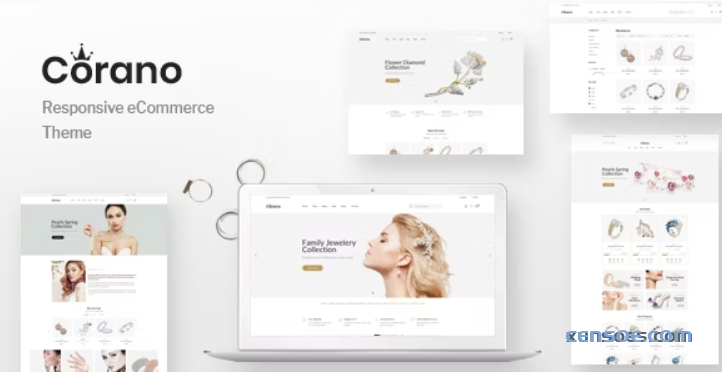 Corano 珠宝店响应式 WordPress 主题具有简单而炫酷的功能,适用于珠宝、时装设计师商店、服装、化妆品和女装商店。