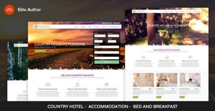 CountryHolidays 是专门为乡村酒店、住宿和住宿加早餐场所设计的 WordPress 主题。它反应灵敏,包括预订/检查可用性表格。该主题提供盒装版和宽版,并基于 Elementor(一款适用于 WordPress 的用户友好的拖放式 PageBuilder)构建,可确保创建网站时的流畅体验。