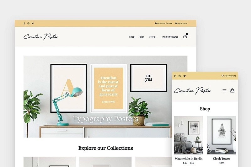 创意海报是专为创意人士打造的简约 WordPress + WooCommerce 主题。忘记复杂的框架和令人困惑的所需插件,使用这个主题既简单又有趣!