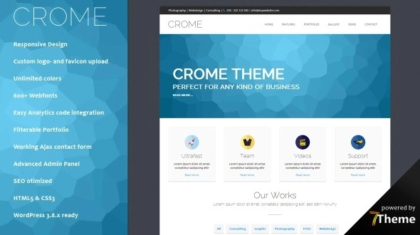 Crome 是一个功能强大、多用途的 WordPress 主题,适合任何类型的业务。它非常容易设置和使用。该主题具有大量出色的功能,例如短代码、Web 字体、动画内容、强大的 CSS3 动画和视差部分。