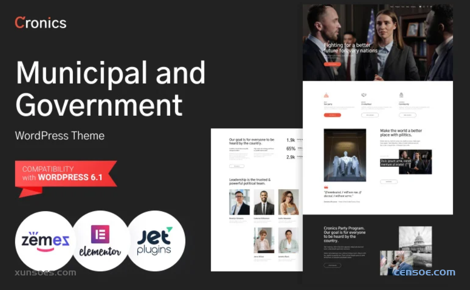 当局必须更贴近民众。因此,需要一个可靠的网站。这样人们就可以随时了解最新情况。网站也是公民信任的保证人和当局行动的结果。 Zemez 团队始终尽力满足客户需求。这就是为什么他们为政治领域创建了 Cronics 市政和政府 WordPress 主题。