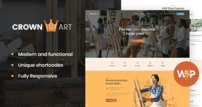 Crown Art 时尚、现代且实用的 WordPress 主题。它是为艺术学校、音乐学校、儿童艺术班、艺术工作室和任何创意社区等精心设计的。该主题既适合私人课程,也适合团体课程。 Crown Art 允许您制定自己的时间表,并让您的学生与您一起预订课程。