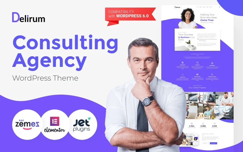 探索全面的 Delirum Consulting Agency WordPress 主题,它允许您创建一个用于企业、商业、财务和咨询服务的现代化网站。由于其有用的小部件和布局,该主题将帮助您为网站提供组织良好的界面和强大的功能。 Delirum 的专业和创意设计将使您的网站充满活力并满足潜在客户的期望。您可以使用不同的引人注目的时尚动画效果,并通过 JetTricks 插件让您的内容通过出色的视觉技巧变得真正生动。您将能够使用 Elementor 页面构建器的一流 JetMenu 插件来创建具有下拉项、内容模块丰富的完全响应式巨型菜单,并根据您的愿景设计菜单样式,而无需任何编码知识。此外,您还会发现 JetBlocks 插件包含基本实用程序小部件,用于实现页眉和页脚的附加功能。借助活动日历和时间轴等插件,您可以在网站上轻松安排计划和安排活动!