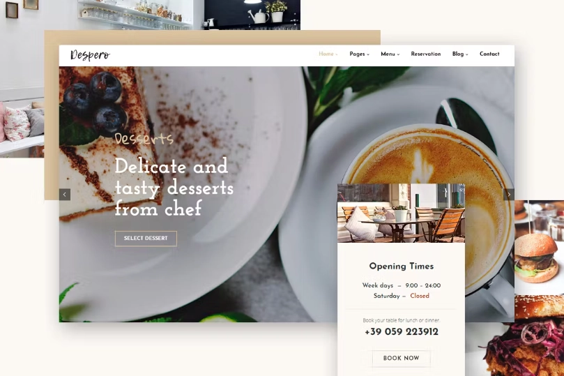 Despero 是一个时尚且独特的响应式 WordPress 主题,适用于舒适且富有创意的咖啡馆、餐厅、小吃店和其他与食品和饮料相关的网站。方便、轻便的设计将轻松帮助您在其他咖啡馆和餐厅中脱颖而出。每个元素都经过深思熟虑,并考虑了所有现代设计趋势以及餐厅主题的各个方面。
