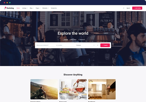 如果您正在尝试创建一个目录网站,但又担心它的外观与您想象的一样,那么 OneListing 是您的首选主题。无论您要构建哪种类型的目录网站,OneListing 的设计方式都可以与您想象的任何设计保持一致。使用此主题,您可以轻松地为餐厅、汽车、房地产、分类广告列表、酒店等创建任何类型的目录网站。