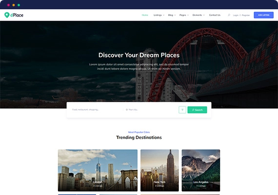 dPlace 主题专为满足构建有吸引力的移动响应式旅行社目录网站的所有细节而量身定制。作为一个成熟的主题,它将允许您创建具有预订和预订功能的旅游目录。其设计旨在满足您的要求,例如现代用户仪表板、内置 SEO 系统、高级搜索选项、多目录选项、自定义字段和翻译支持。