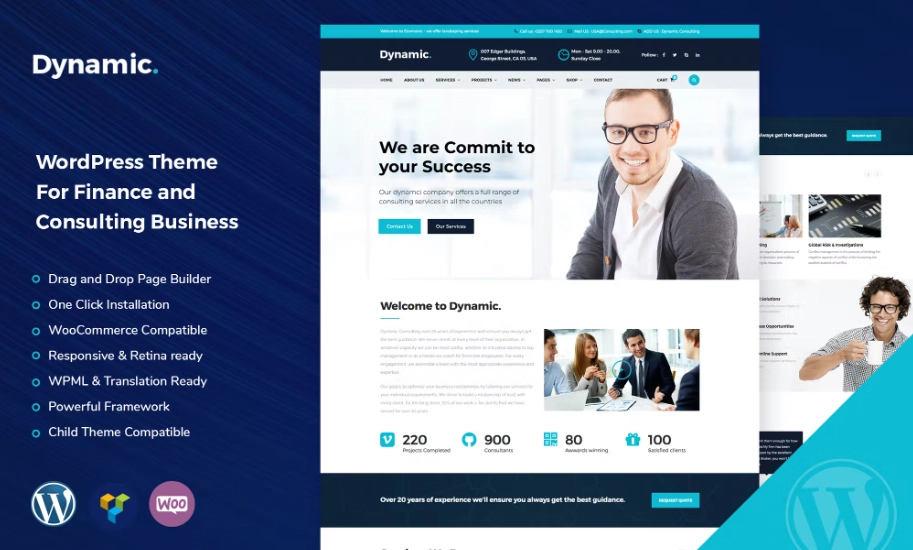 我们知道每个业务都是不同的,这就是为什么我们进行了深入研究来构建 Dynamic 中的每个块,并将其专门提供给您的业务 Dynamic 是完美的财务、咨询业务 WordPress 模板。 Dynamic 最适合财务顾问、会计师、咨询公司、保险、贷款、税务帮助、投资公司等企业网站。这是一个业务模板,有助于企业业务和金融公司的在线展示。动态是完全响应的!高度重视智能手机和平板电脑体验 该模板附带了您在线展示的必要功能,如作品集、博客、推荐和个人资料页面等。动态可能是您在线展示的绝佳选择。 特点概述 拖放页面构建器 Visual Composer(节省 34 美元):快速、直观且智能的页面构建器将使您的定制变得快速、轻松。您的布局将在一分钟内准备好发布! Slider Revolution(节省 19 美元):使用 Revolution Slider 轻松创建具有不同动画效果的令人惊叹的幻灯片 包含演示内容:Dynamic 开箱即可使用。通过 FTP 或 WordPress 快速安装它,激活后即可加载演示内容。然后您可以在已经设计的页面上添加您自己的内容。 一键安装:使用我们强大的一键安装程序安装 Dynamic。立即启动并运行您的网站!快速、简单、快如火箭! 响应式视网膜就绪:如今,您的网站在移动设备上的外观非常重要。因此,我们确保财经出版社在移动、桌面和视网膜屏幕上看起来都很棒! WPML Translation Ready:Dynamic 与最流行的 WordPress 插件兼容,支持创建多语言布局。使用 WPML 将您的网站翻译成任何语言! 高级排版选项:通过强大的主题选项面板选择任何 Google 网络字体库!现在您可以为您的品牌设定独特的风格! 与联系表单 7 兼容:动态与最强大和最流行的自定义联系表单 WordPress 小部件兼容!在几秒钟内创建您自己的表单! 子主题兼容:动态使您能够使用子主题轻松覆盖默认模板文件。它还使您能够以安全的方式更新您的主题! 强大的框架:Dynamic是基于最流行的、完善的、强大的vafpress主题选项框架! 包含 PSD 文件(价值 12 美元):现在您可以先在 Photoshop 中进行自定义,因为我们已在此包中包含 PSD 文件。 详细文档:丰富的文档以及有关如何设置和自定义 Dynamic 的精彩视频指南将使您的自定义变得超级简单和快速! 跨浏览器兼容性:Dynamic 在包括 IE9+ 在内的所有主要浏览器中看起来都很棒。