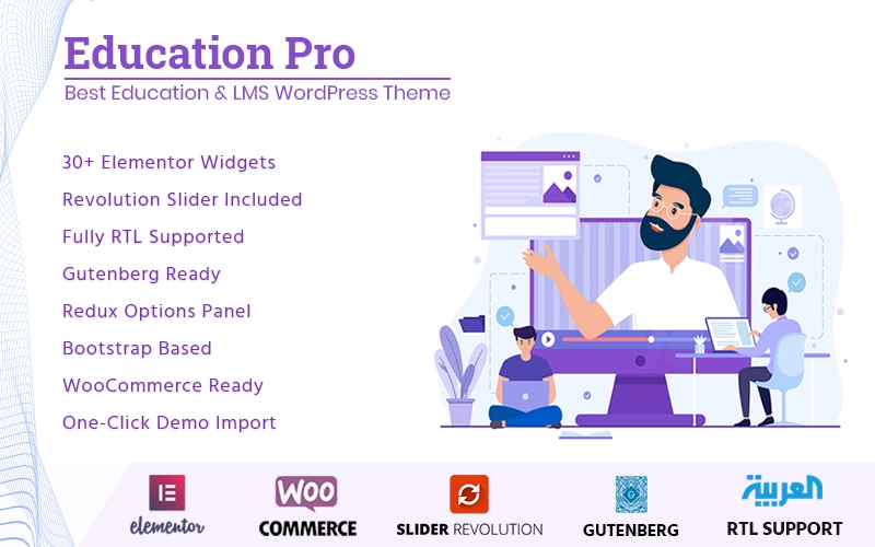 Education Pro 是 LMS 和教育目的响应式 WordPress 主题,具有轻量级和更少的插件。可用于教育目的,例如学校、大学、学院等。 Education Pro 模板是使用超快速的轻量级 Elementor 页面构建器构建的,具有拖放功能,因此您的网站不会负载过重。我们使用 Redux 框架在主题选项面板中添加了许多选项,因此您不需要任何编码知识。