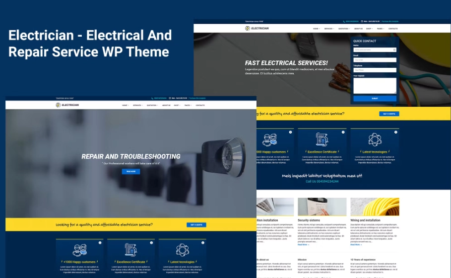 电工是一个干净的 WordPress 主题,适合提供电工、维修和建筑服务的公司。它配备了强大的联系表格来吸引潜在客户和向导报价表格;您将获得创建一个漂亮且完整的网络形象所需的所有元素。