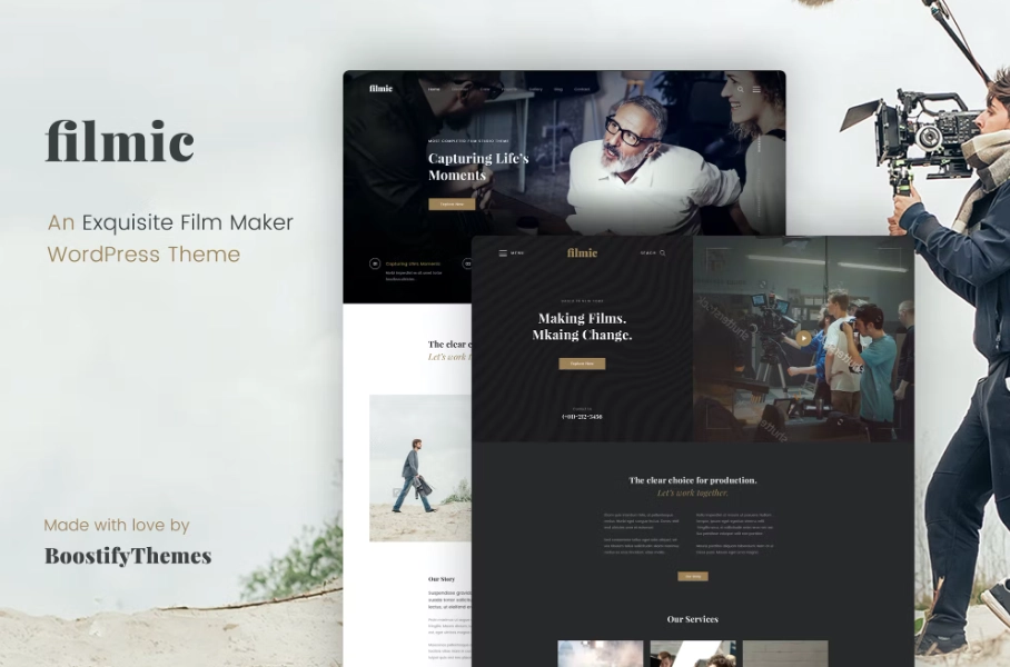 Filmic适合任何创意机构/公司/团队/个人使用,以建立自己的电影工作室/电影制作人中心/电影制作/视频博客网站和任何类型的电影网站。凭借干净、优雅和现代的设计,您和您的合作伙伴不再需要依赖 YouTube 或其他网络杂志等其他网站来宣传和展示您自己的工作场所/产品。借助 Filmic,您可以通过一种额外的方式向全世界展示您的创造力。