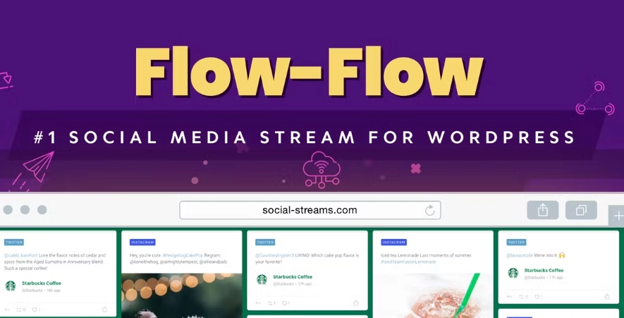 Flow-Flow—— WordPress Facebook Instagram Twitter Feed Grid Gallery 是一个高级社交媒体插件,允许在漂亮的响应式画廊和小部件中显示社交媒体提要(+ RSS 和 WordPress)的组合。例如,您可以在一个图库中混合添加自定义 Facebook feed、Instagram feed 和 Twitter feed。嵌入来自多个来源的用户生成内容 (UGC) 是向您的 WordPress 网站添加社交证明、提高品牌影响力并促进销售的好方法。用户行为研究表明,如果您没有任何形式的评论或社交证明,超过 70% 的用户不会向您购买。就其价格而言,该插件是对类似功能按月付费的网络服务的绝佳替代品。 Flow-Flow WordPress 社交流无需按月订阅!