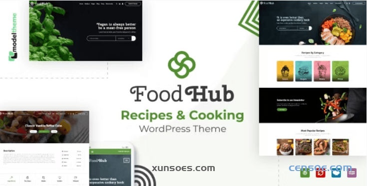 Foodhub 是一个专业的食品食谱列表 WordPress 主题。现在该主题带有两个不同的列表演示:通用食谱(主要演示)和素食食谱。