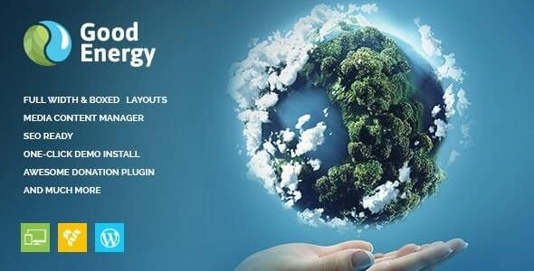 GOOD Energy清新时尚多用途生态WordPress主题。它是为任何生态相关企业(以及非营利生态组织)而设计的。此外,它还适合任何回收企业、替代能源分销公司、环境保护机构、筹款局、有机生物相关公司网站、科学研究或社会活动等。此外,您可以将其用作您的环保运动推广、环境保护、自然能源(太阳能、风能)或只是一个关于拯救我们的大自然的博客。此外,它也非常适合生态志愿服务。生态可再生能源 WordPress 主题插件集成了一组很酷的插件:WPBakery(又名 Visual Composer,我们认为它比 Elementor 更好);用于生态画廊的基本网格插件,用于筹集资金的 ThemeREX 捐赠插件。 GDPR 就绪