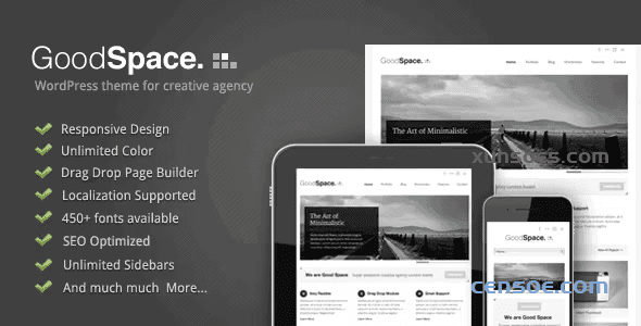 Good Space Good Space 是一个专门针对创意机构的 WordPress 主题。它非常干净、简约,具有现代设计。这个主题还具有响应能力。此外,它还具有大量功能。包括我们的页面项目,可以通过我们出色的工具页面生成器轻松管理。这个主题的管理面板功能非常丰富。您还可以创建无限的侧边栏,选择超过 450 种字体,或者如果您想使用自己的字体,我们提供 cufon 上传器。您还可以通过此管理面板将每个元素翻译成您的语言。