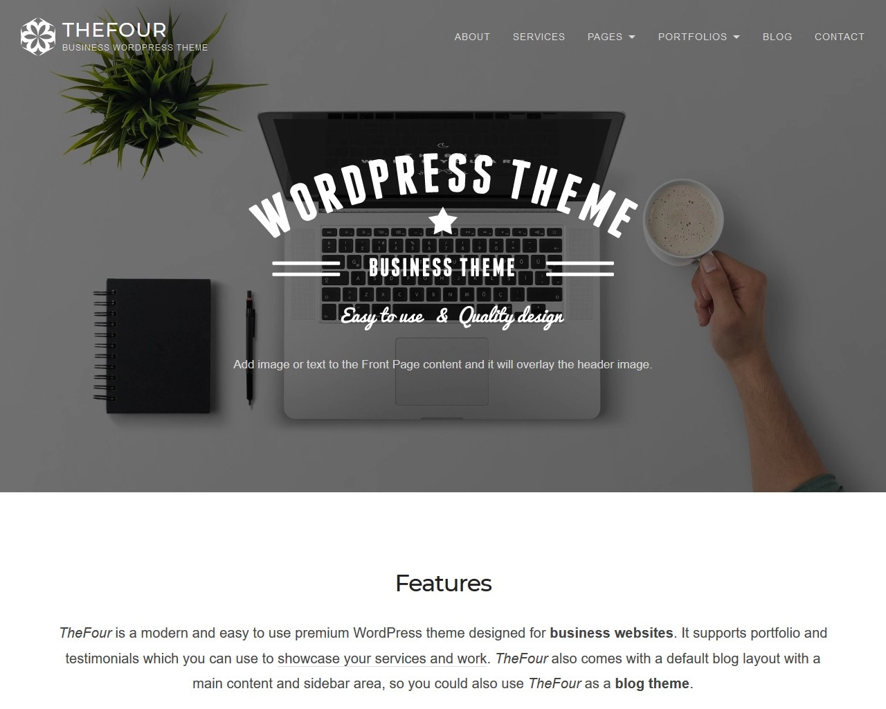 TheFour 是一个适合博主、设计师和企业的美丽、创意和响应式主题。具有响应式设计、视网膜就绪资产、具有视差滚动效果的令人印象深刻的英雄图像、自定义徽标、页面模板和翻译就绪代码