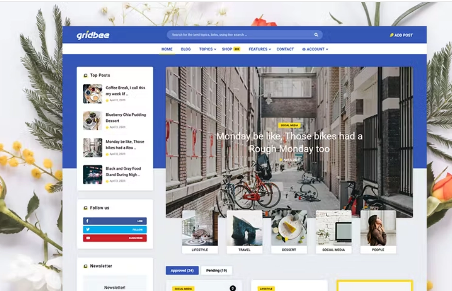 Gridbee WordPress 主题是一种简单而新鲜的方式来展示和分享任何事物的故事。如果您想让您的用户能够从前端区域创建帖子,那么 Gridbee 会员用户内容共享主题是您的完美解决方案。允许您的用户创建、编辑、查看和删除帖子,允许他们向所有人展示和分享故事,并让您的用户可以通过主页和文章页面发布带有源链接的帖子