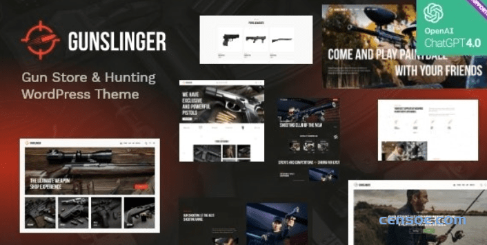 枪手强大的现代射击狩猎俱乐部武器商店主题。它非常适合在线武器商店、枪支商店、射击学校、枪支课程、射击场或枪支培训网站。