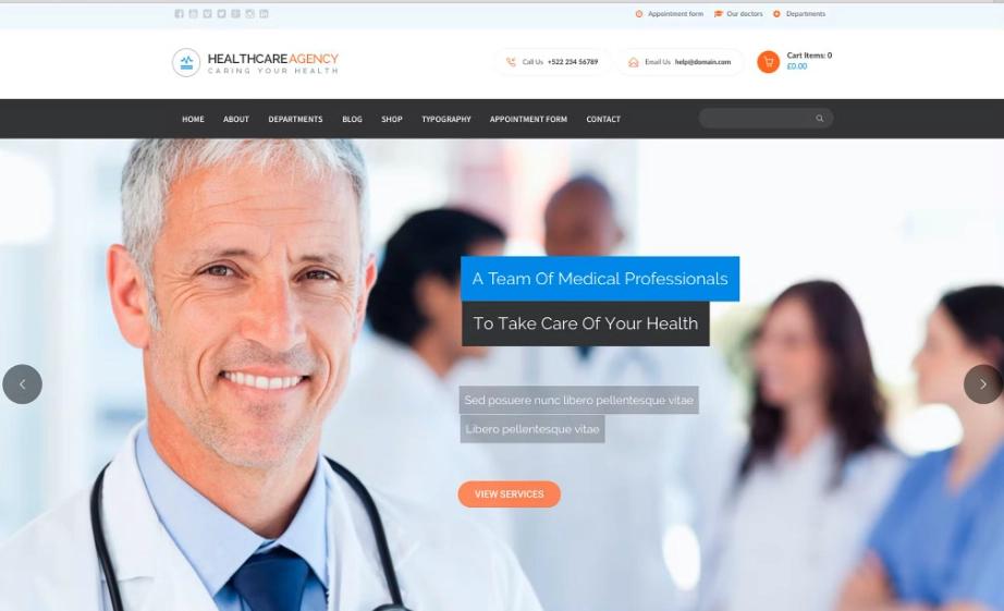 Healthcare Agency 是一个多用途医疗和健康相关设计,适用于医疗和健康相关业务或该领域的任何企业网站。它还适合医疗中心、牙医、医生、全科诊所、医疗保健或医院。