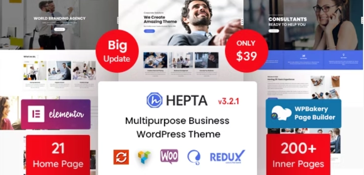 Hepta 是一个创意、干净且独特的响应式多用途商业 WordPress 主题。它非常适合任何商业、金融、咨询、保险、贷款、税务帮助、投资公司、创意业务、企业、公司、个人场所、健身、健身房、培训师、个人或自由职业者投资组合、最小投资组合、建筑、装修、医疗等. 向客户展示他们的服务、项目/产品组合和其他信息。