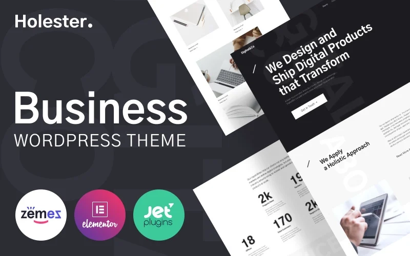 如今,很难想象一家企业没有在线代表。如果您想提高生产力,就不能采用平庸的设计,而需要所有一流的功能。商业服务网站模板非常适合您。 Holester 是一个干净、现代的 WordPress 主题,包括时尚和创意的视觉效果。 业务服务网站模板随 Elementor 提供,允许您管理页面模板、布局和内容。使用此编辑器,您将能够添加图形块、评论、选项卡、社交图标和许多其他元素。还有一些可以吸引客户的附加功能。 Holester 为您带来丰富的社交整合选项,让您可以通过 Twitter、Facebook、Instagram 和 YouTube 等网络推广您的帐户。