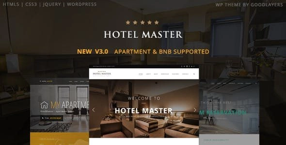 Hotel Master酒店、旅馆、公寓预订WordPress主题是最好的酒店、旅馆、度假村、公寓、民宿房间预订WordPress主题。它配备了最好的客房预订系统。