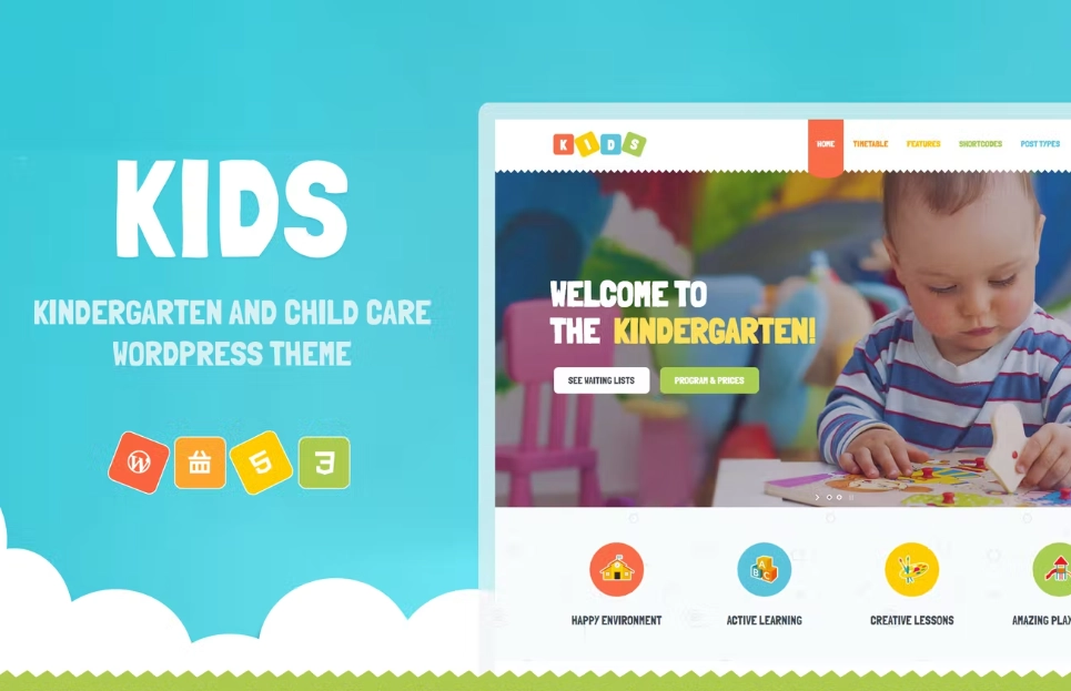 Kids 是一个幼儿园 WordPress 主题,可用于学前班和日托机构、儿童团体、游戏学校、幼儿园和儿童商店。 Ir 拥有幼儿园、日托网站以及儿童用品商店或儿童保育博客所需的所有功能。该主题具有幼儿园网站所需的鲜艳色彩,可以通过管理面板完全调整。该主题非常易于使用,即使是孩子也能掌握!