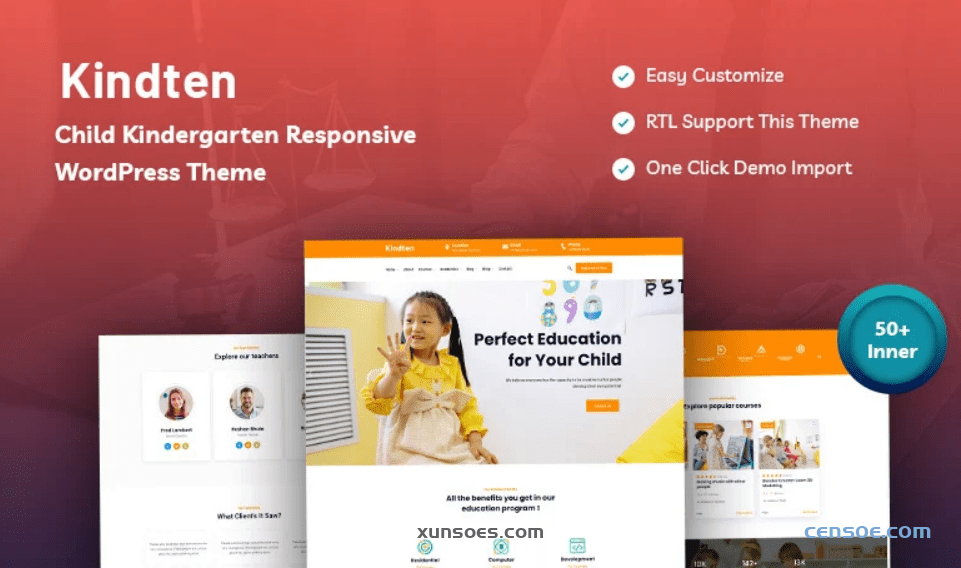 Kindten 是一款儿童幼儿园响应式 WordPress 主题,适合幼儿园、学前班、学校中心和托儿中心。它具有完美的设计,可以展示您所有的主要服务并展示您的技能。它具有丰富的定制选项,可用于任何相关业务,如幼儿园、学前班、学校中心和儿童保育中心、其他商业服务等。LMS 插件将让您通过附加功能支持您的数字教育产品。您使用的设备将像您的网站一样运行。幼儿园模板是适用于所有类型设备的完全响应式布局。