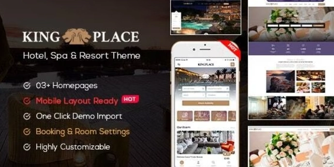 KingPlace 是一个干净、现代且响应灵敏的 WordPress 主题,专为酒店、汽车旅馆、旅游、度假村、水疗预订或任何类型的旅游网站而设计。