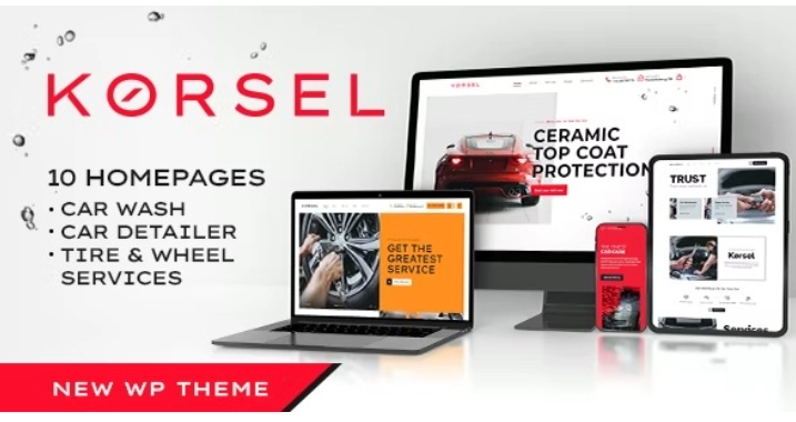 Korsel WordPress 主题专为从事汽车售后市场业务的公司设计:汽车服务、汽车清洁、洗车、轮胎/轮胎或电池更换、轮胎/轮胎安装、定期维护和汽车维修。