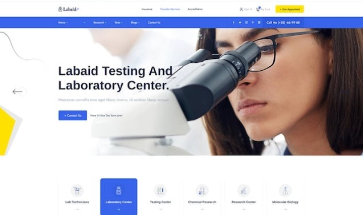 Labaid 实验室科学研究 WordPress 主题 Labaid 非常适合创新、实验室、医学研究、教授、研究、研究中心、研究小组、研究机构、研究员、科学、科学实验室、科学研究、科学、技术。