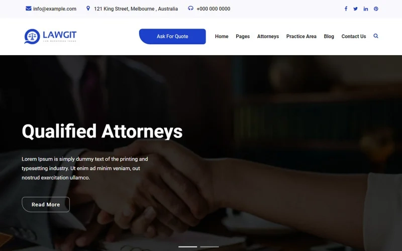 LawGit 是一个律师和律师 WordPress 主题。这是一个实时、美丽、优雅的律师和公司主题。您将根据需要更改所有部分。有一个定制选项,每个部分都是专门为律师和律师服务创建的。对于想要创建网站的法律行业来说,它具有独特的设计和令人惊叹的功能。我们构建了需要律师和公司服务公司的所有律师和公司服务功能。那里的每个部分都具有独特的创意。它在移动设备和桌面上都很棒。它干净简单