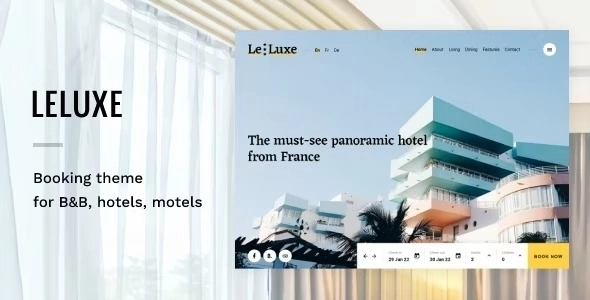 LeLuxe 是一个现代 WordPress 主题,旨在给人留下深刻的印象,非常适合预订或展示酒店、汽车旅馆、水疗中心、B&B 或其他类似企业。凭借精美的设计、多语言支持、移动布局、Contact Form 7 预订请求系统、独特的内置全景查看器,现在任何人都可以非常轻松地构建预订网站,而无需了解任何一行代码。