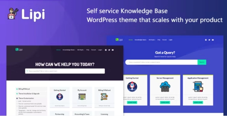 Lipi 是强大的知识库 WordPress 主题,可随您的业务扩展。它保证改善客户的在线支持体验,并帮助他们保持对您的品牌和公司的忠诚度。