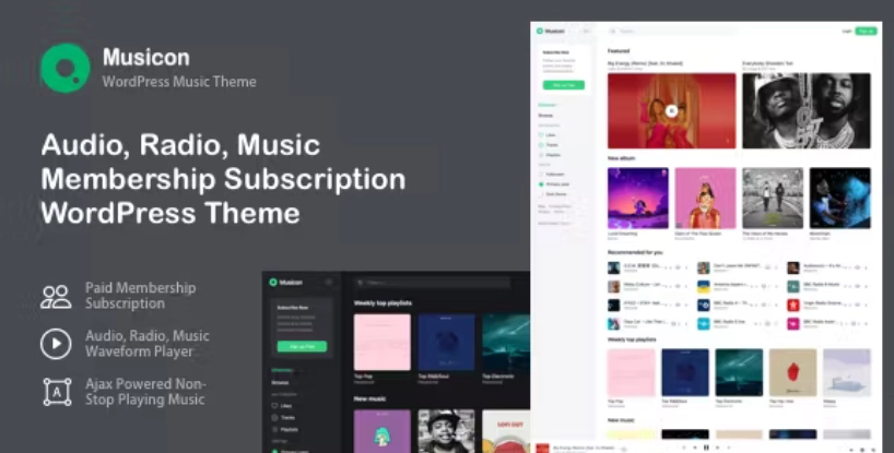 Musicon 是一个音乐 WordPress 主题,具有许多功能来构建专业的音乐 Web 应用程序,它的目标是音乐平台、音频发布商、复杂的 DJ 应用程序。适合音乐爱好者的音频社交网络。