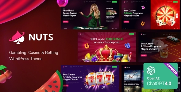Nuts 是一款高级 WordPress 主题,内置对流行页面构建器的支持、带有滑动手势的滑块,并且支持 SEO 和 Retina。独特的继承和覆盖选项系统允许为站点的不同部分和支持的插件设置单独的参数。