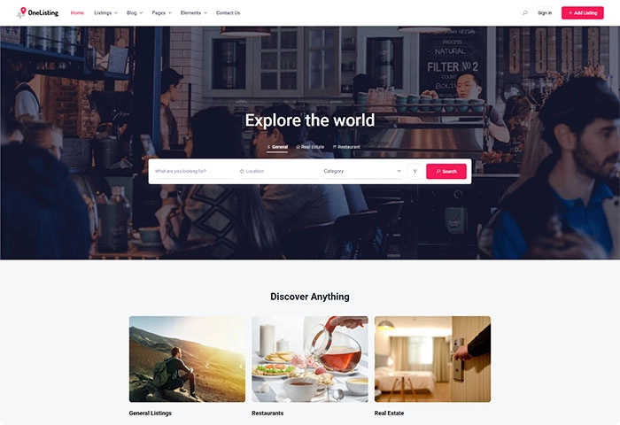 如果您正在尝试创建目录网站,但担心其外观与您想象的一样,OneListing Pro 是您的首选主题。无论您要构建哪种类型的目录网站,OneListing Pro 的设计方式都可以与您想象的任何设计保持一致。更不用说,该主题与带有一些方便的小部件的 Elementor 等页面构建器完全兼容。