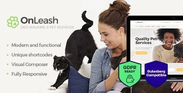 OnLeash 精彩清新干净的遛狗宠物服务 WordPress 主题。对于遛狗者、动物收容所、宠物酒店、动物训练师来说,这将会很有趣。此外,它还适用于宠物看护人、狗训练班、收养中心、动物社区,甚至宠物店。宠物服务 WordPress 主题功能 在线预约预订管理 漂亮的预制页面:服务、产品、团队、预约、“工作原理”高级联系表格 完整的 Woocommerce 商店兼容性 出色的画廊帖子布局 遛狗服务 WordPress 主题插件 OnLeash 非常通用和灵活,包含数十个短代码和页面、页眉和页脚的预定义布局,使新网站的流程成为对你来说最简单。该主题与许多很酷的插件兼容,如果您想为您的企业建立强大的在线形象,则必须使用这些插件。它们是 Visual Composer、Revolution Slider、Booked Appointments、Instagram Feed、Contact Form 7 等。OnLeash 还支持 WooCommerce 插件,帮助您建立在线宠物商店。