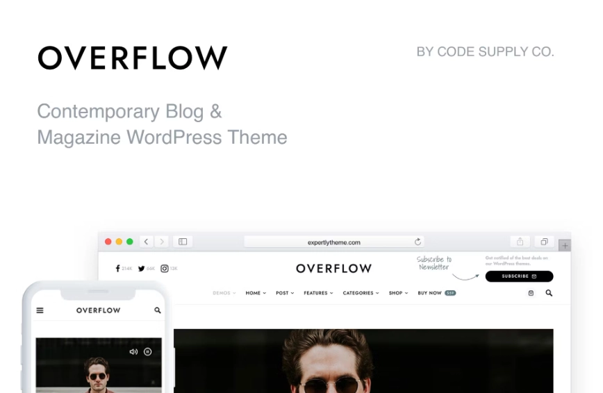 Overflow 是一个干净且经过深思熟虑的 WordPress 主题,适合生活方式博主、杂志和社会影响者。 主题特色: 同一主题中的 9 个设计精美的演示 特色帖子部分 类别过滤器 多种页眉类型 智能色彩 通过即时实时预览进行自定义 主页和存档页面的多种存档布局 多页面布局 超快速超级菜单 AMP 支持 从主存档中排除精选帖子 谷歌字体 附加内容 智能粘性导航 粘性侧边栏 智能多级菜单 带小部件的移动滑出式菜单 智能精选帖子来源 分页帖子 客座作者和多作者帖子以及共同作者的支持 RTL 编号分页、加载更多和无限加载 帖子浏览量计数器支持 读后时间 视网膜就绪 自适应优化图像尺寸 超灵敏 功能丰富但简单 Yoast 支持的 SEO,包括面包屑样式 实时搜索结果 WordPress 画廊的内置样式 贡献者页面 相关帖子 优化 CSS,无依赖关系 使用 WordPress 编码标准进行编码 页脚小部件 超快 Google 结构化数据支持 使用 Hook 构建,开发人员友好 翻译就绪 WPML 和 Polylang 兼容 具有内置 AdSense 支持的众多广告和横幅广告位 一键演示导入和演示切换器 由精英作者与特色项目制作