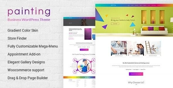 绘画公司 WordPress 主题”。适合绘画公司和画家的简单、干净、现代的建筑主题。其多功能设计适用于任何油漆公司、墙面油漆店、油漆公司、油漆网站、建筑师工作室和附属商业服务网站。 这个室内建筑WordPress主题适合室内设计、建筑服务、物业维护、建筑、天花板、室内装饰、室内外设计、管道、抹灰、勤杂工、木工、油漆承包商、电工、翻新、改建服务等企业网站。完全可定制的极简主义建筑主题具有超级菜单大量的短代码,可实现高度定制。