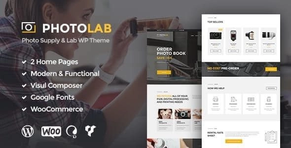 PhotoLab 是一个响应灵敏、精致、清新、诱人的照片公司照片供应商店 WordPress 主题。它具有专为摄影业务而设计的现代实用设计,可满足您所有的胶片、数字处理和印刷需求解决方案。该主题最适合照相馆服务机构或照相馆公司。此外,PhotoLab 对于摄影师局、企业印刷厂、印刷厂、摄影相机博客或摄影比赛网站组织来说也很有趣。照片公司照片供应商店 WordPress 主题功能 预制模块:关于、团队、产品、服务 完整的 Woocommerce 商店兼容性 高级联系表格 漂亮的即用短代码 照片公司照片供应商店 WordPress 主题插件 PhotoLab 与最新版本的 WooCommerce 完全兼容,允许您创建摄影器材在线商店。该主题具有直观的视觉界面和信息丰富的布局,由于其完全响应和视网膜就绪,因此在任何平台上看起来都很棒。此外,PhotoLab 与一系列高级插件兼容:Revolution Slider、Essential Grid、WooCommerce、WPBakery Page Builder 和 PO Composer,使您可以轻松设置和管理您的 Photo Lab 网站。