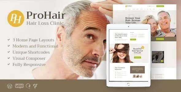 ProHair 功能强大、现代响应式脱发诊所美容 WordPress 主题。它非常适合健康和美容行业、美容、发型设计。还适合水疗、按摩和美容护理。此外,由于主题多功能设计和与主题相关的预定义布局,它也可以用于任何医疗网站。在主题内,您会发现数十个预制页面来显示您的服务、各种产品组合,甚至是预建的在线商店(因为完全支持 WooCommerce)!脱发诊所 WordPress 主题功能 在线预约预订管理 预制页面:关于、服务、团队、商店、预约、产品、联系人 联系表格 完整的 Woocommerce 商店兼容性 美容 WordPress 主题插件 ProHair 与一系列高级插件兼容,例如 WPBakery Page Builder 、滑块革命、基本网格,使您的网站外观凉爽清新。该主题支持 MailChimp for WP 插件,允许您的用户接收您的新闻通讯,预约安排与您的患者/客户的会议,以及强大的 ThemeREX 插件,将显着扩展您的网站功能。